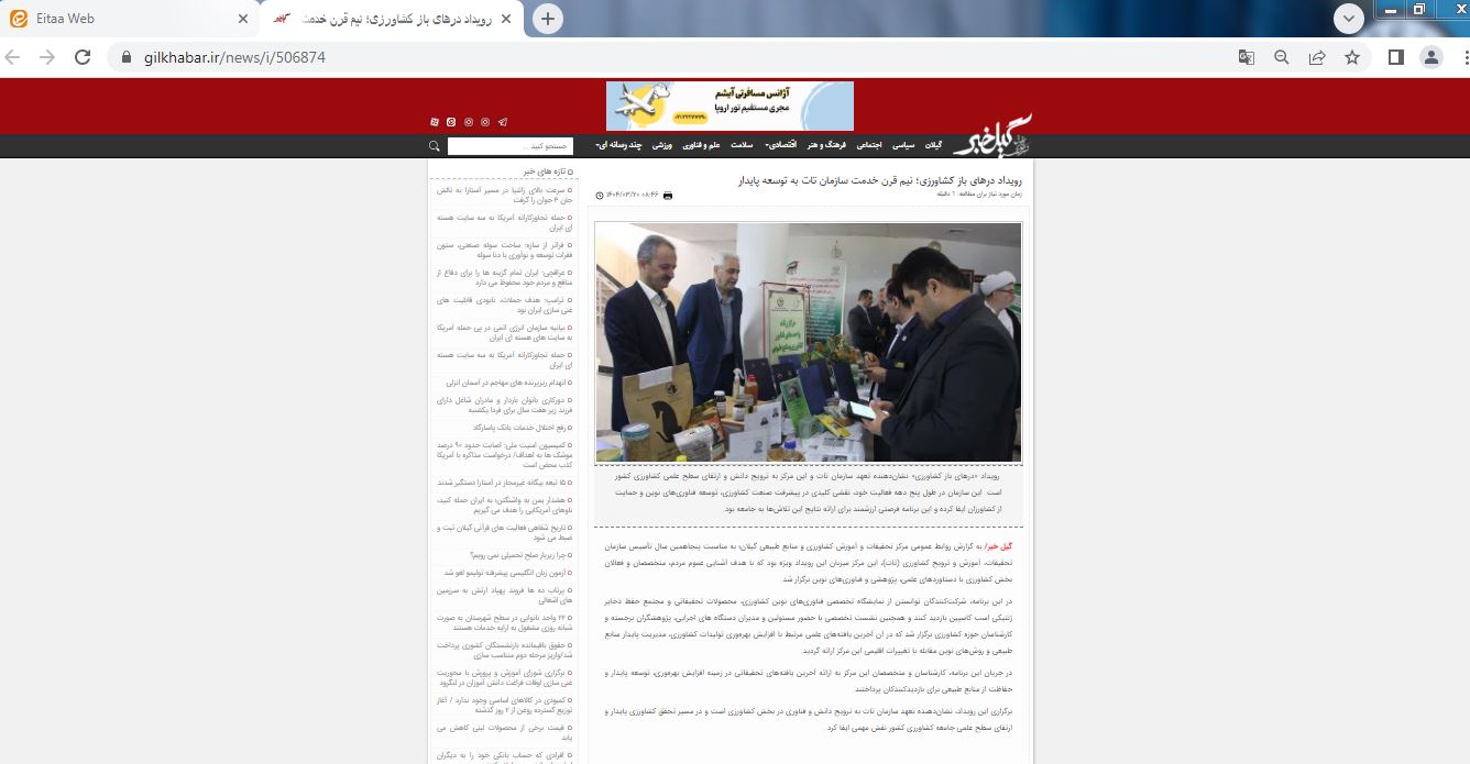 به گزارش روابط عمومی مرکز تحقیقات و آموزش کشاورزی و منابع طبیعی گیلان؛ به مناسبت پنجاهمین سال تأسیس سازمان تحقیقات، آموزش و ترویج کشاورزی (تات)، این مرکز میزبان این رویداد ویژه بود در حالی که برخی رسانه‌ها این رویداد را فرصتی برای تحول در بخش کشاورزی و ارائه آخرین یافته‌های تحقیقاتی در زمینه افزایش بهره‌وری، توسعه پایدار و حفاظت از منابع طبیعی مرکز دانستند.