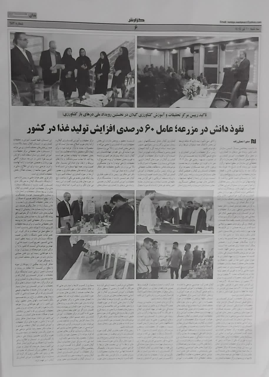 به گزارش روابط عمومی مرکز تحقیقات و آموزش کشاورزی و منابع طبیعی گیلان؛ در پی برگزاری «رویداد ملی درهای باز کشاورزی» به مناسبت پنجاهمین سالگرد تأسیس سازمان تحقیقات، آموزش و ترویج کشاورزی (تات)، هفتهنامه ندای کشاورز، نیز بازتابی از این رویداد مهم منتشر کرده است.